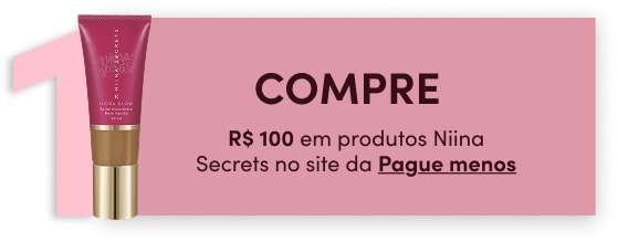 Podem participar pessoas físicas, maiores de 18 anos, residentes e domiciliadas em território nacional, que realizem compras de no mínimo R$ 100,00 (cem reais) em produtos da marca Niina Secrets na Loja Online Pague Menos, dentro do período de participação.