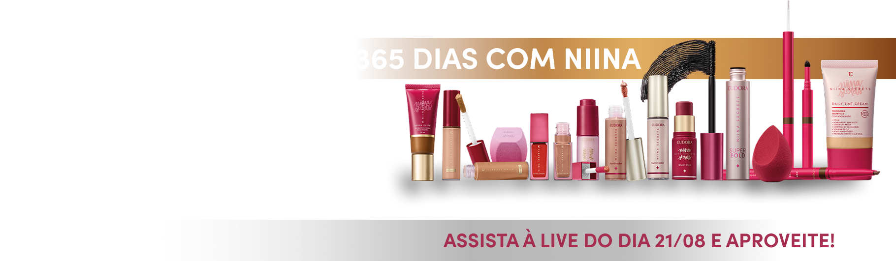 Promoção válida de 21.08.2025 a 22.09.2025 para compras on line no site www.paguemenos.com.br e www.extrafarma.com.br. Consulte condições de participação e regulamento completo em www.365diasdeniina.com.br. Certificado de Autorização SPA nº 04-043805/2025. Imagens Ilustrativas. Premiação entregue na forma de vale compras na loja on line Pague Menos para produtos Niina Secrets .